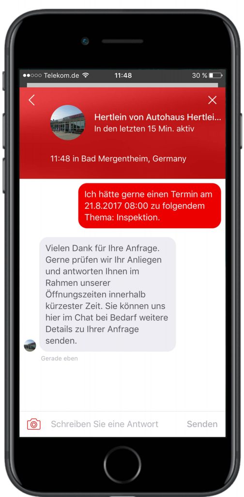 Die Digitalisierung schreitet voran und ist längst auch bei uns in Weikersheim angekommen. „Bisher sind unsere Kunden meist vorbeigekommen, wenn Sie eine Frage hatten“. Doch das wandelt sich allmählich: Immer mehr wünschen sich alternative, vor allem Smartphone- und webbasierte Kommunikationskanäle. Dieses sich wandelnde Verhalten bestätigen auch aktuelle Ergebnisse der Auto Markforschung: Nach dem DAT-Report 2017 informieren sich heute vier von fünf Verbrauchern im Internet, wo sie ihr Auto warten oder reparieren lassen können. Besonders auch die Internetseiten der Autohäuser sind eine wichtige Anlaufstelle.